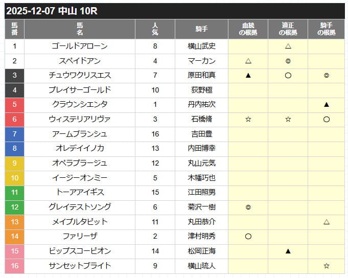 推奨された5頭は、人気馬と穴馬がバランスよく混ざった構成。