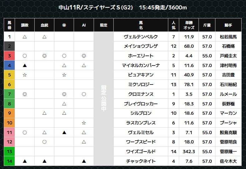 ぜひ予想の参考にしてください。